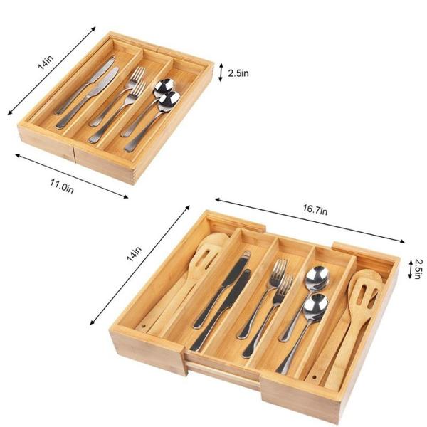 Multifunctional 5-Grid Bamboo Style PC Storage Box for Tableware 35.6 x 27.9 x 6.4 cm Images |